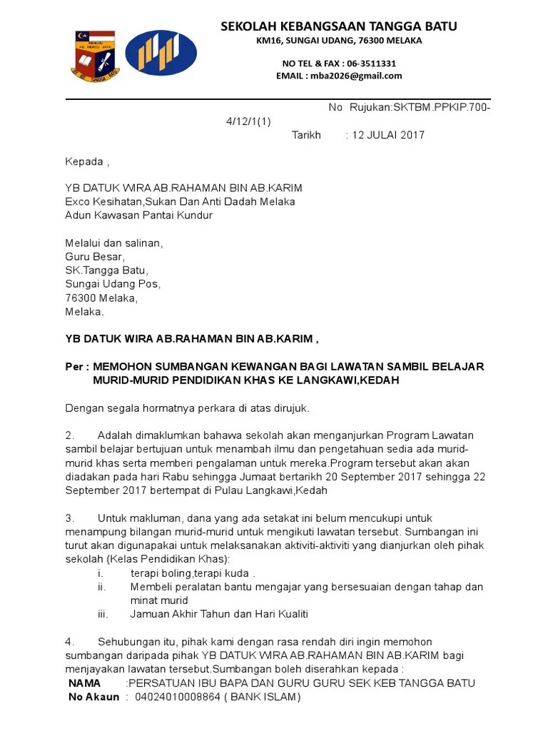 Surat Rasmi Memohon Sumbangan / Surat Mohon Sumbangan Pibg Gordoncxt